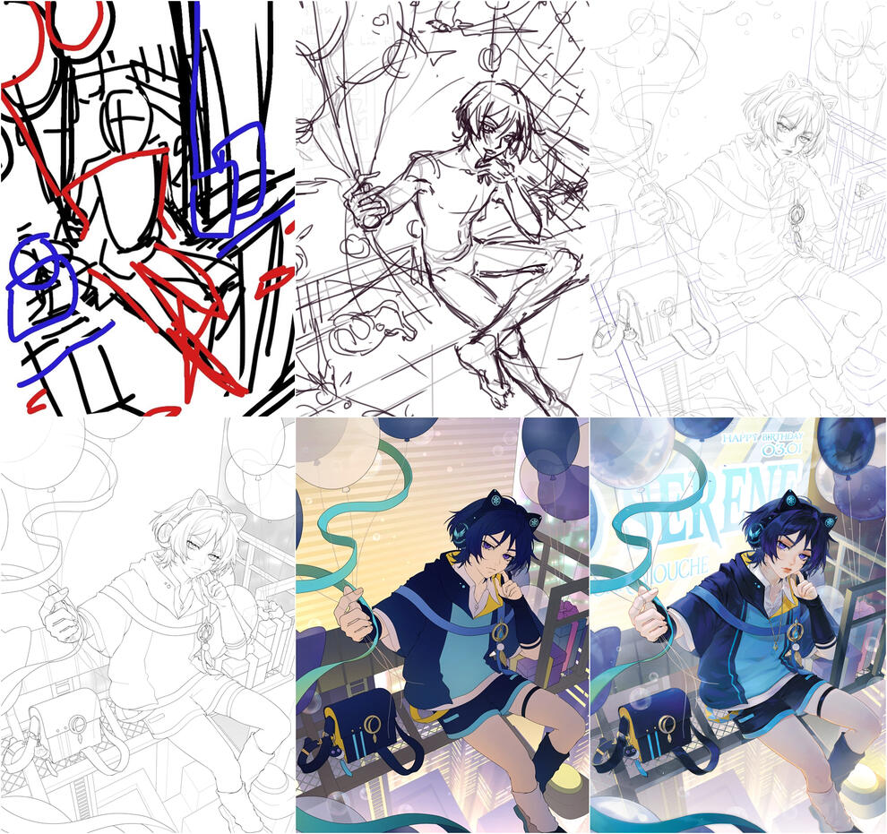 I will draw more detail and sketch color so you can imagine the mood of the painting. You can feedback and I will fix the sketch 3 times for free (+5% total for every extra fix), so please clearly point out where you need to fix but I won't fix the main pose and general layout. I won't charge fixing fee if I didn't get your brief
